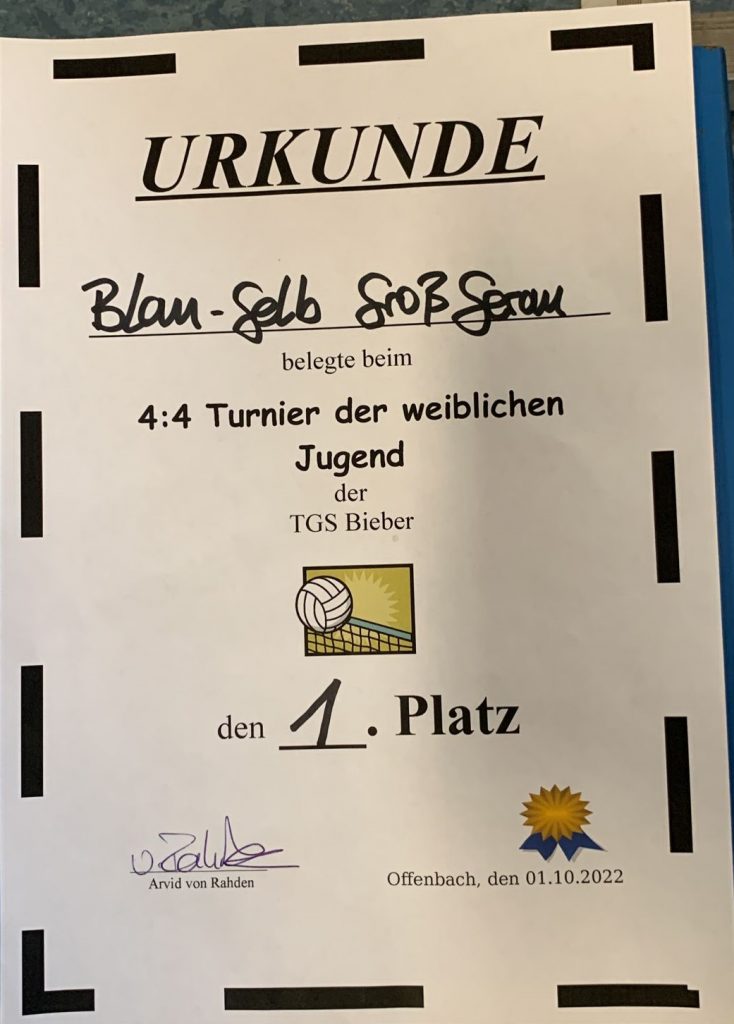 Acht Mädchen waren ausgezogen, um zu erfahren, wie viel sie bis jetzt gelernt haben. Alle waren aufgeregt, weil keiner so richtig einschätzen konnte, wie gut oder schlecht sie spielen. Dann im ersten Spiel löste sich die Nervosität und die Mannschaft konnte sich entscheidend durchsetzten. Am Ende freuten sich alle über den tollen Turniersieg im ersten Anlauf. Herzlichen Glückwunsch!